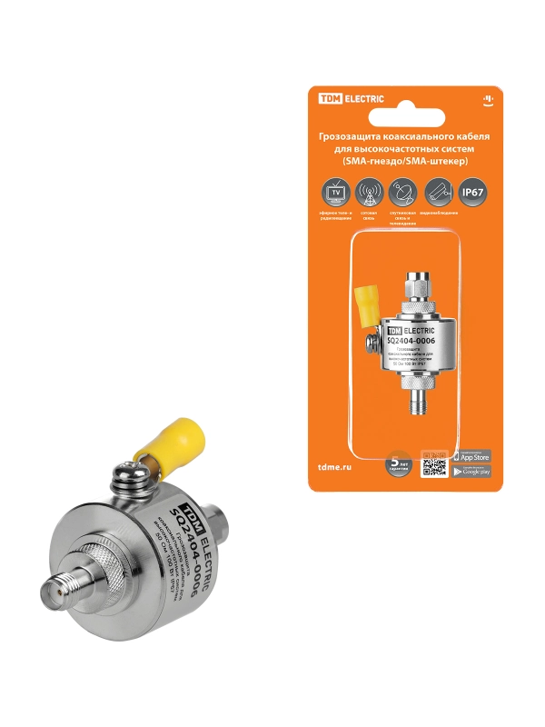 Грозозащита коакс кабеля ВЧ систем, SMA-гнездо/SMA-штекер 50 Ом DC-6 ГГц 200Вт, с зазем, IP67, TDM