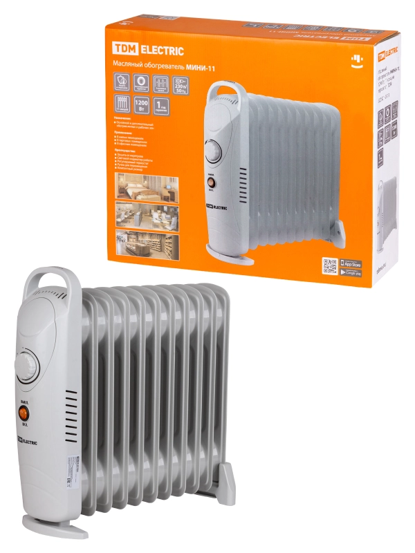 Масляный обогреватель МИНИ-11, 1200 Вт, 11 секций, термостат, TDM