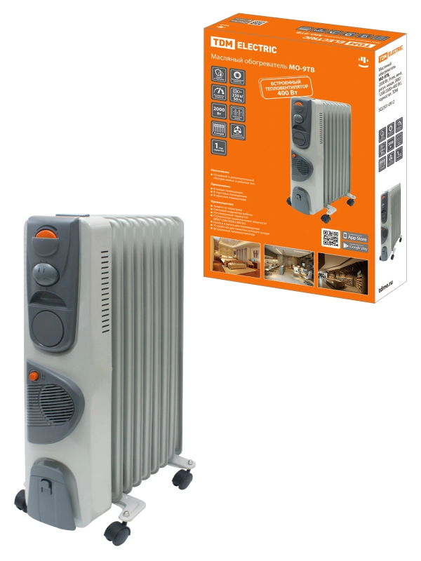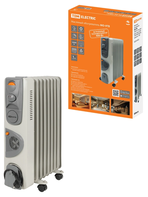 Масл. обогрев. МО-9ТВ, 2000 Вт, 9 сек, вент, регул. мощн. (800/1200/2000+400 Вт), термостат, TDM