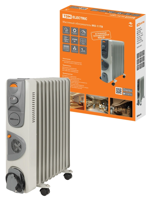 Масл. обогрев. МО-11ТВ, 2500 Вт, 11 сек, вент, рег. мощн. (1000/1500/2500+400 Вт), термостат, TDM