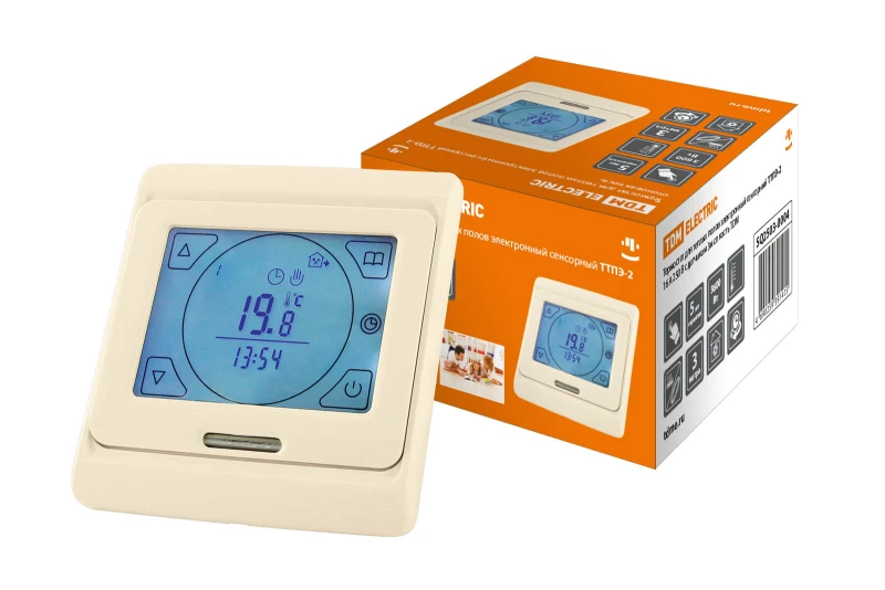 Термостат для теплых полов электронный сенсорный ТТПЭ-2 16А 250В с датчиком 3м сл костьTDM