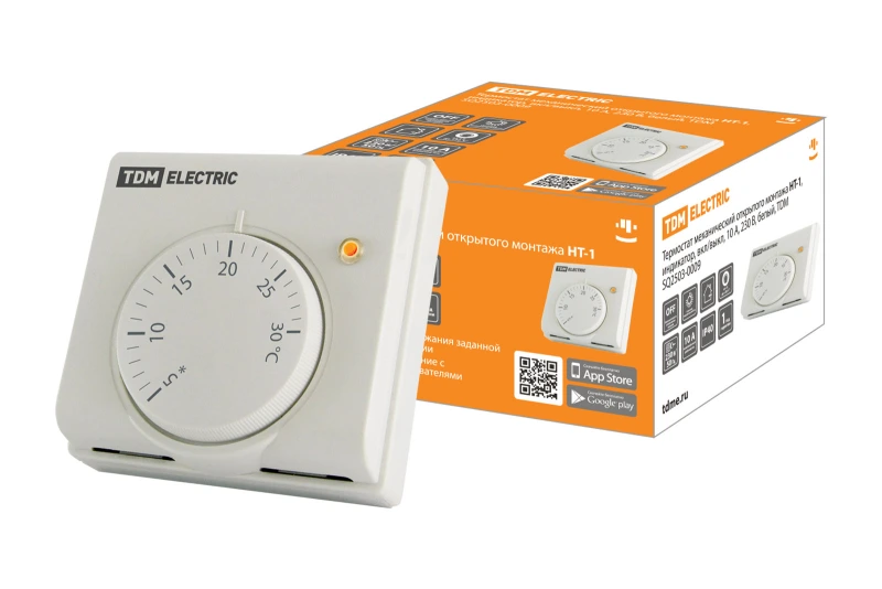 Термостат механический открытого монтажа НТ-1, индикатор, вкл/выкл, 10 А, 230 В, белый, TDM