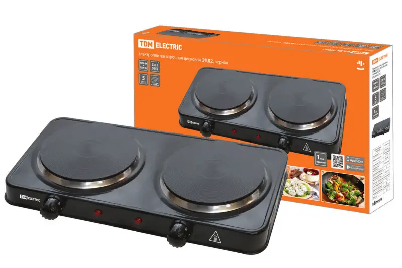 Электроплитка двухконф. ЭПД2 230 В, 2х1 кВт, диск, черная, TDM