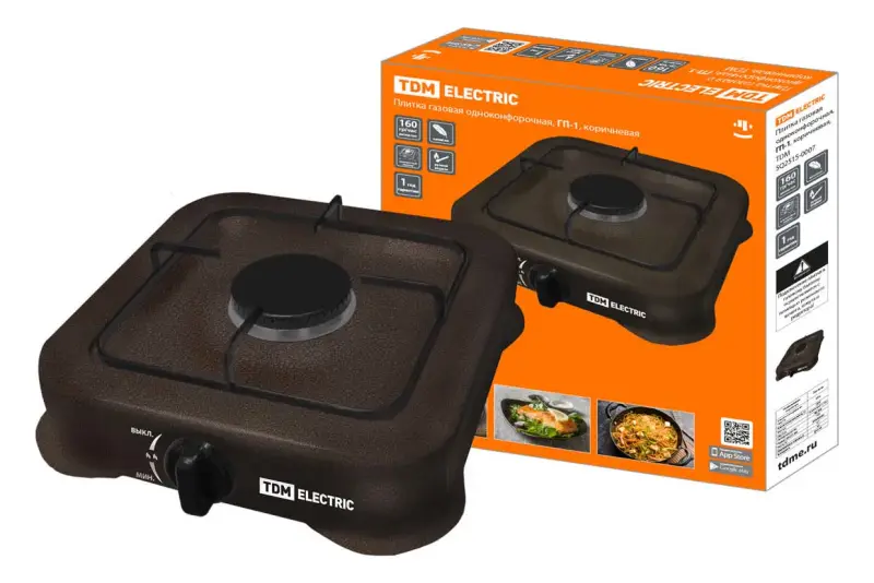 Плитка газовая одноконфорочная, ГП-1, коричневая, TDM