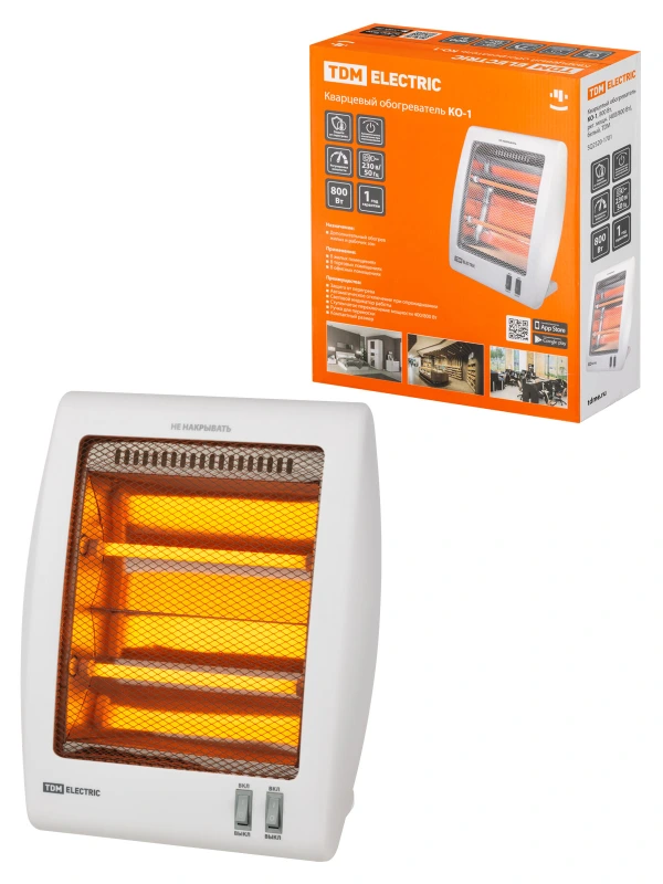 TDM Кварцевый обогреватель КО-1, 800 Вт, рег. мощн. (400/800 Вт), белый,