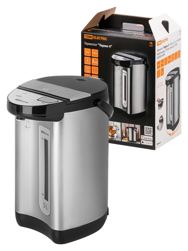 Термопот "Термо 4", металл, 5 л, 2 способа подачи воды, 750 Вт, стальной, TDM