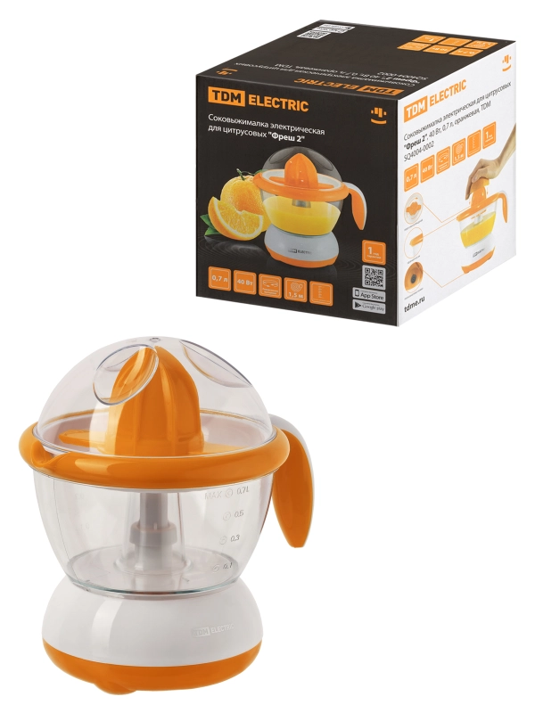 Соковыжималка электрическая для цитрусовых "Фреш 2", 40 Вт, 0,7 л, оранжевая, TDM