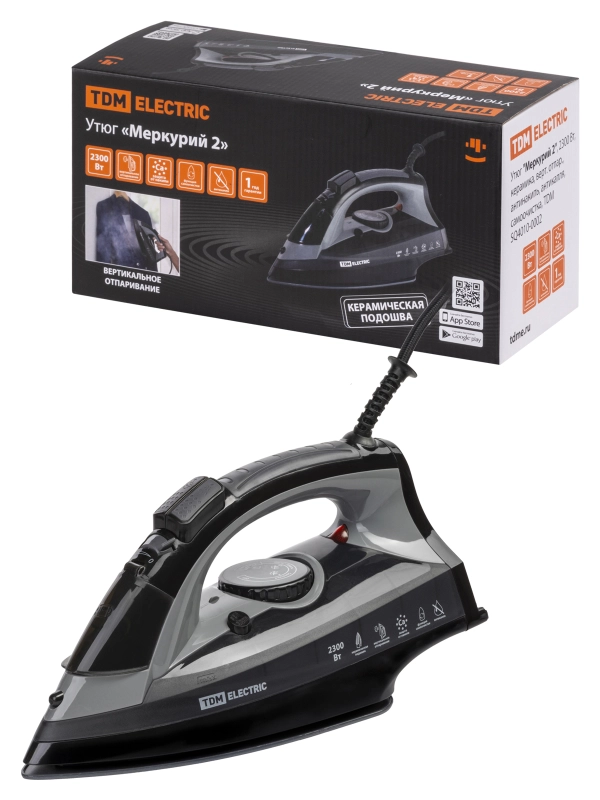 Утюг "Меркурий 2", 2300 Вт, керамика, верт. отпар., антинакипь, антикапля, самоочистка, TDM