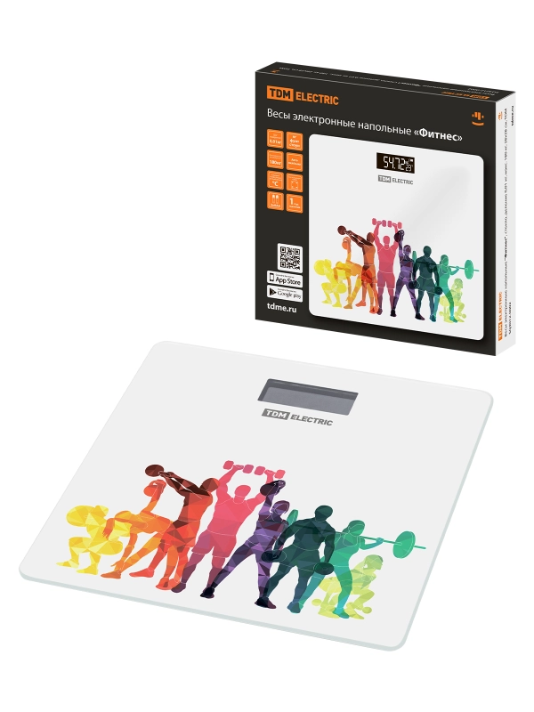 Весы электронные напольные "Фитнес", стекло, деление 0,01 кг, макс. 180 кг, 28х28 см, TDM