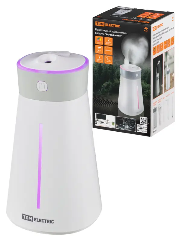 Портативный увлажнитель воздуха "Ареал мини", 0,38 л, RGB, насадки: вентилятор, ночник, белый, TDM