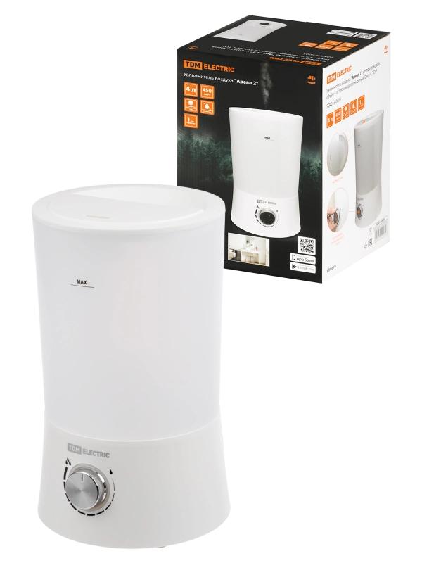 Увлажнитель воздуха "Ареал 2", ультразвуковой, объём 4 л, производительность 450 мл/ч, TDM