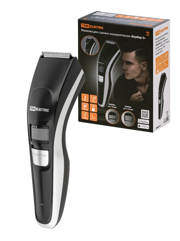 Машинка для стрижки аккумуляторная "Барбер 2", 2 регулируемых гребня (1-10 мм и 11-20 мм), TDM