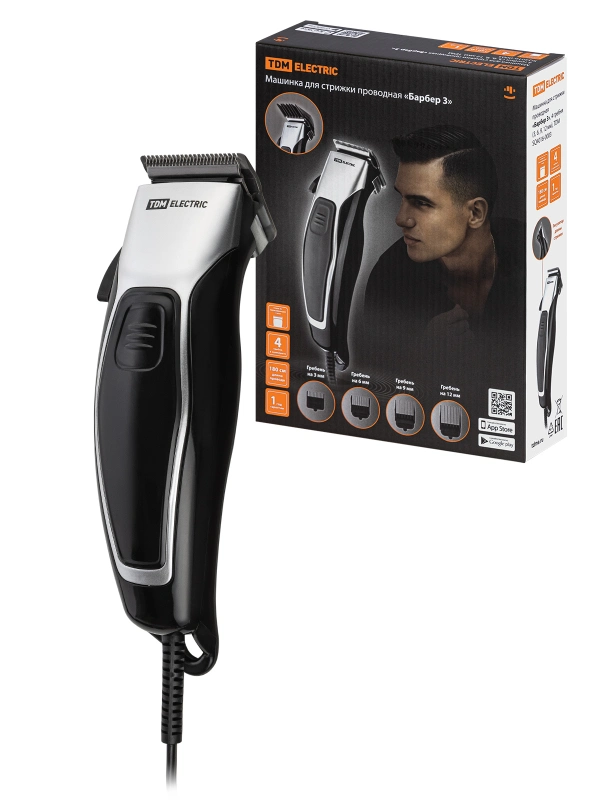 Машинка для стрижки проводная "Барбер 3", 4 гребня (3,6,9,12 мм), TDM