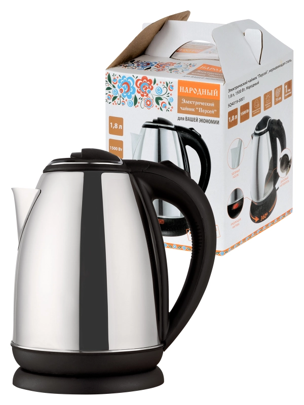 Электрический чайник "Персей", нержавеющая сталь, 1,8 л, 1500 Вт, Народный