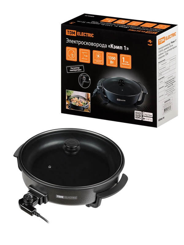 Электросковорода "Кэмп 1", 1350 Вт, диаметр 30 см, глубина 7 см, антипригарное покрытие, TDM