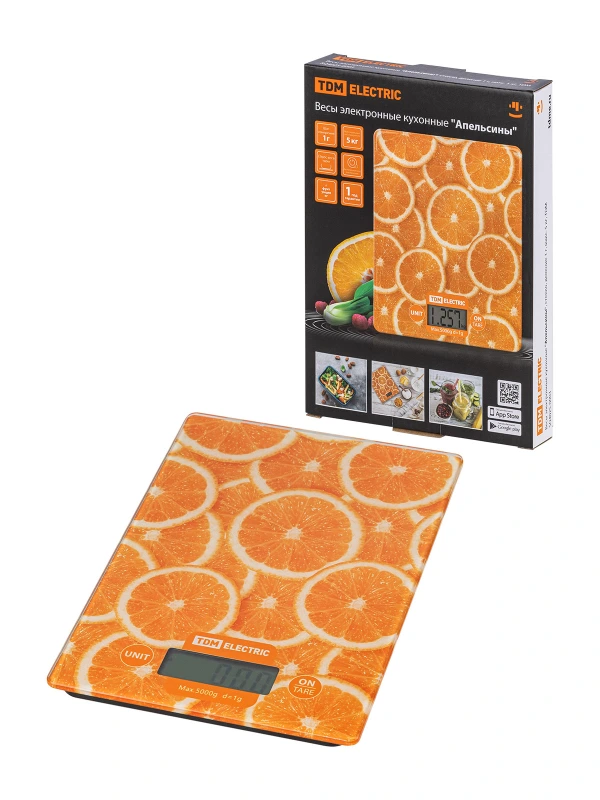 Весы электронные кухонные "Апельсины", стекло, деление 1 г, макс. 5 кг, TDM