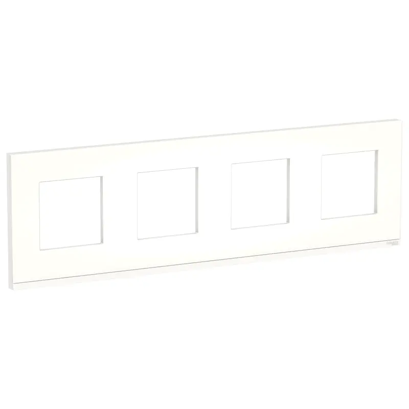 Рамка Schneider Electric UNICA PURE (матовое стекло) четырёхместная с задней панелью цвета белый.