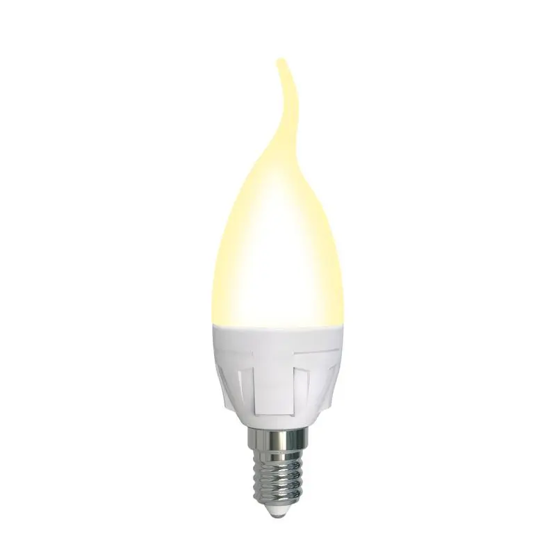 LED-CW37 7W/3000K/E14/FR/DIM PLP01WH Лампа светодиодная, диммируемая. Форма «свеча на ветру», матовая. Серия Яркая. Теплый белый свет (3000K). Картон. ТМ Uniel.