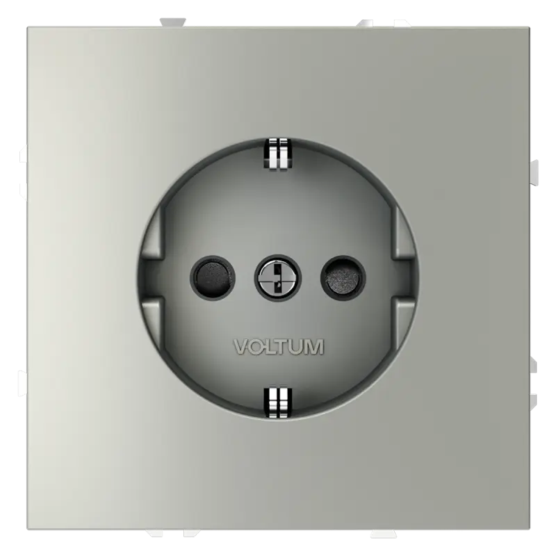 Розетка встраиваемая Voltum S70 с заземлением и защитными шторками, 16А, (сталь) VLS040205