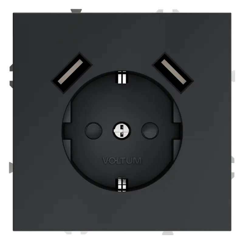 Розетка встраиваемая VOLTUM S70 с заземлением и защитными шторками, 16А, с USB, A+A, (графит)