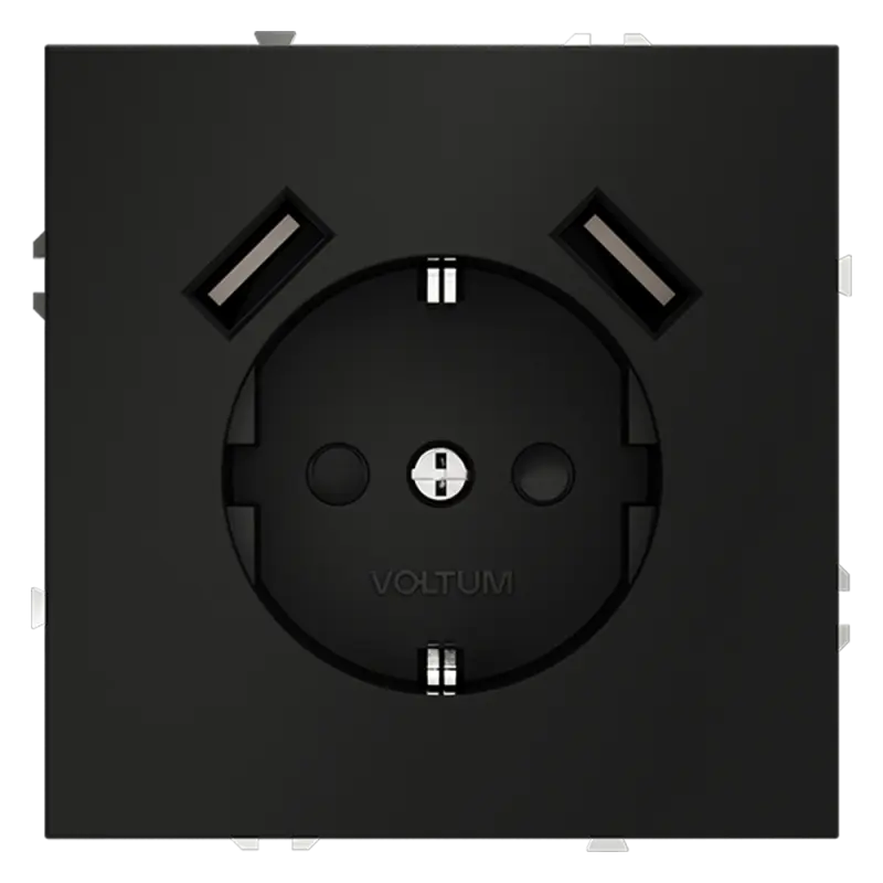 Розетка встраиваемая VOLTUM S70 с заземлением и защитными шторками, 16А, с USB, A+A, (черный матовый)