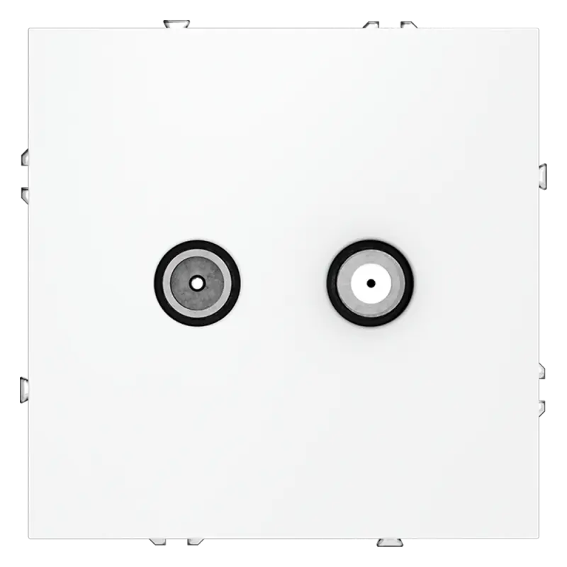Корпус. TV+SAT розетка «прячет» внутри стены неприглядный провод и упрощает подключение телевизора. Внешний вид — лаконичный, без лишних деталей. Корпус выполнен из термостойкого поликарбоната.