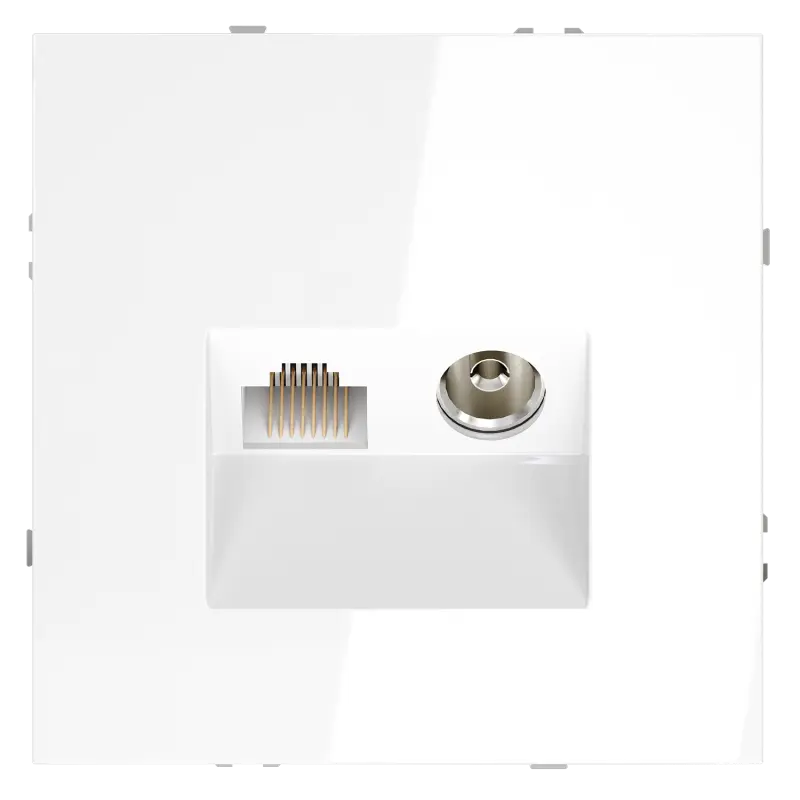 Назначение. Универсальная розетка TV+RJ45 в одном модуле обеспечивает одновременное подключение телевизионного кабеля и интернет-соединения.