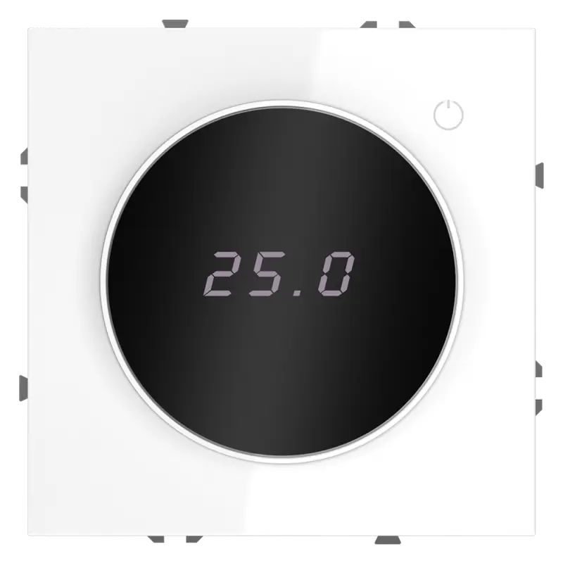 Место установки. Терморегуляторы Voltum предназначены для регулирования температуры электрического теплого пола. Актуальны как в городских квартирах, так и в загородных дачных домах без центрального отопления. Корпус. Дизайн терморегуляторов Voltum сочетается со стилем остальных электрических устройств компании. Они совместимы со всеми рамками. Материал внешних декоративных элементов — поликарбонат. Конструктивные особенности. Терморегуляторы работают с любыми типами теплых полов и рассчитаны на нагрузку до 3500 Вт. Устройства оснащены светодиодной индикацией режима и дисплеем, на котором отображается температура поверхности пола. Красный индикатор — «подача питания на нагревательный кабель (идет процесс нагрева)», отсутствие индикации — «заданная температура достигнута». В течение 15 минут после нагрева терморегулятор переходит в интеллектуальный «спящий режим», уменьшая яркость подсветки цифр и сокращая энергопотребление. Регулировка осуществляется вращением панели управления. Терморегулятор поставляется в комплекте с механизмом из пластиковой накладки и датчиком температуры.