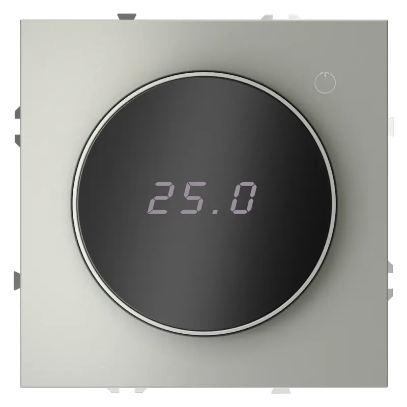 Место установки. Терморегуляторы Voltum предназначены для регулирования температуры электрического теплого пола. Актуальны как в городских квартирах, так и в загородных дачных домах без центрального отопления. Корпус. Дизайн терморегуляторов Voltum сочетается со стилем остальных электрических устройств компании. Они совместимы со всеми рамками. Материал внешних декоративных элементов — поликарбонат. Конструктивные особенности. Терморегуляторы работают с любыми типами теплых полов и рассчитаны на нагрузку до 3500 Вт. Устройства оснащены светодиодной индикацией режима и дисплеем, на котором отображается температура поверхности пола. Красный индикатор — «подача питания на нагревательный кабель (идет процесс нагрева)», отсутствие индикации — «заданная температура достигнута». В течение 15 минут после нагрева терморегулятор переходит в интеллектуальный «спящий режим», уменьшая яркость подсветки цифр и сокращая энергопотребление. Регулировка осуществляется вращением панели управления. Терморегулятор поставляется в комплекте с механизмом из пластиковой накладки и датчиком температуры.