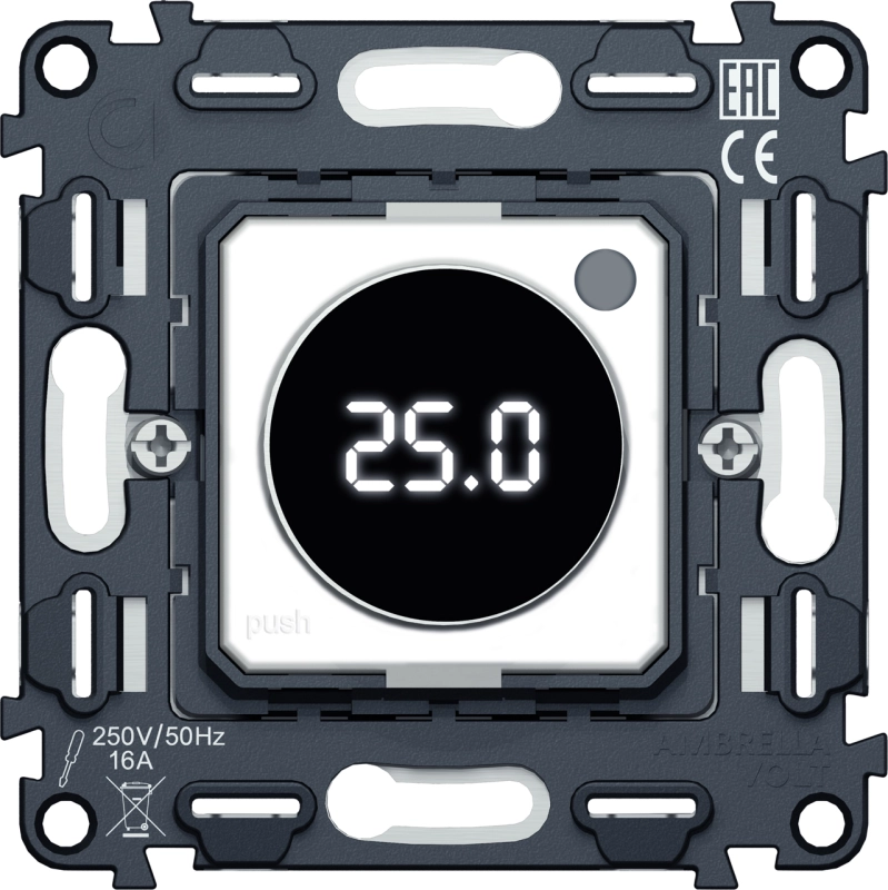 Механизм терморегулятора с цифровым дисплеем с подсветкой и датчиком для теплого пола 16A-250V QUANT (EXTRA CONTROL) VM1385