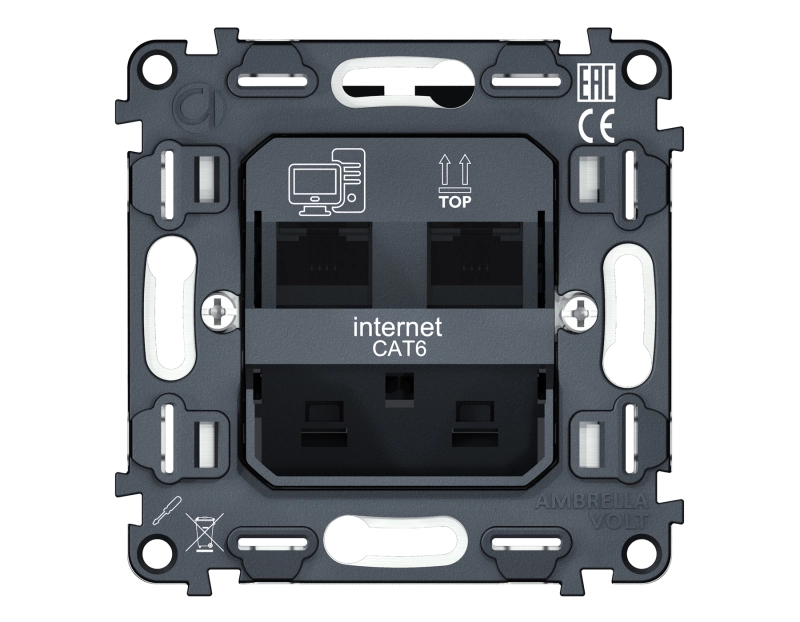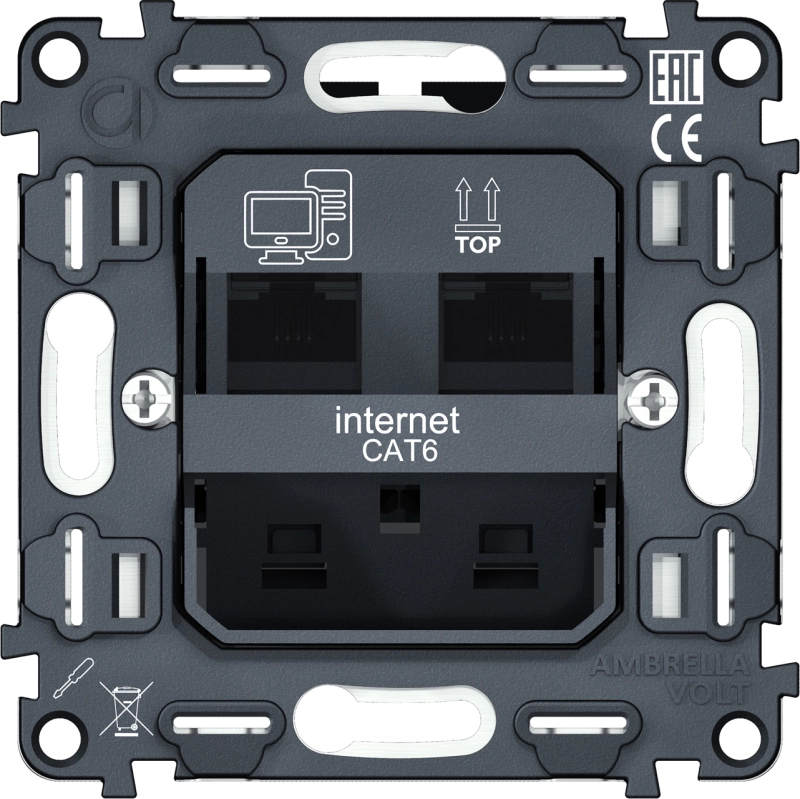 Механизм компьютерной двойной розетки RJ-45 (8P8C) CAT6 с автоматической защитной шторкой QUANT VM189